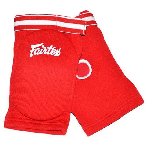 Premium elastic cotton elbow pads from Fairtex for competition or training with high impact padding to protect the elbow and a velcro fastening at the top for a secure fit.