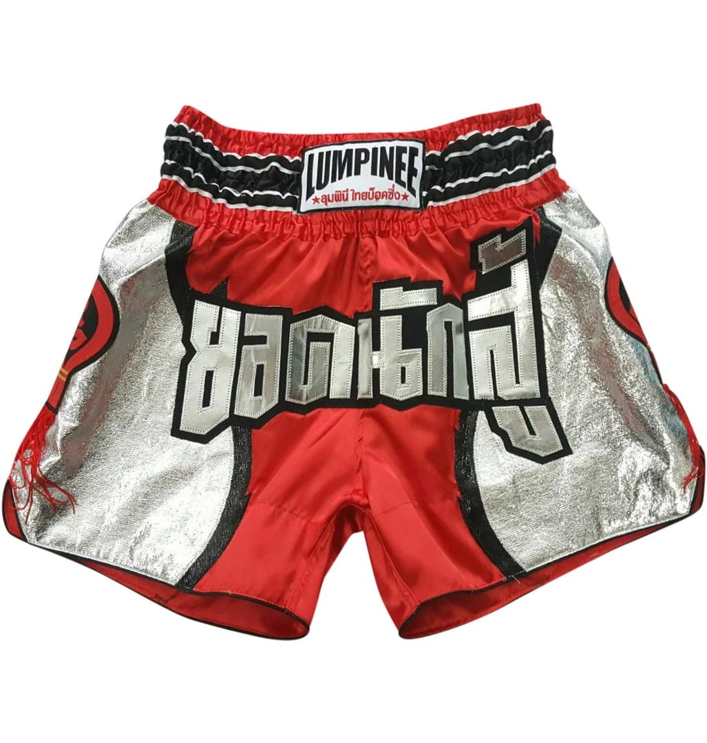 LUMPINEE RETRO MUAY THAI SHORTS KICKBOXING SHORTS FOR WOMEN – Silver Line Red