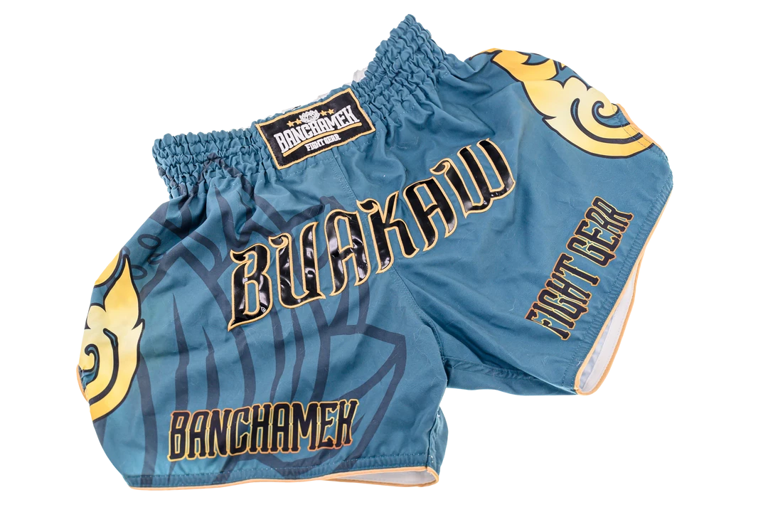 Muay Thai fighter and legend Buakaw Banchamek, with his own fight gear.