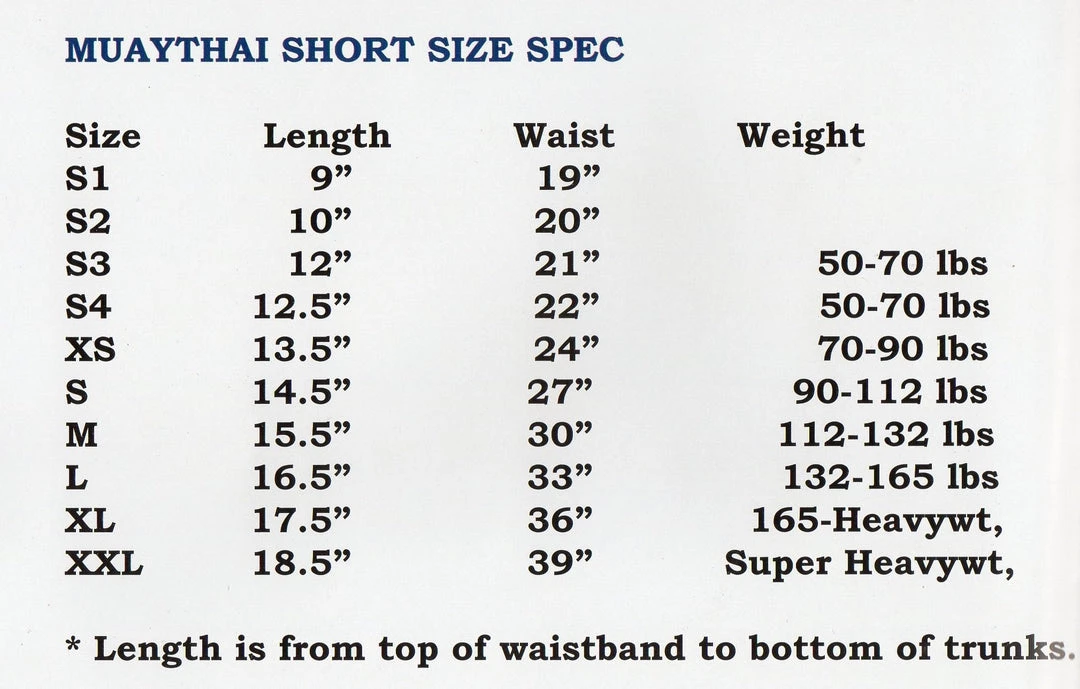 - Design with extra-wide and short trunks to give you full range of motion with all kicks, and knees.