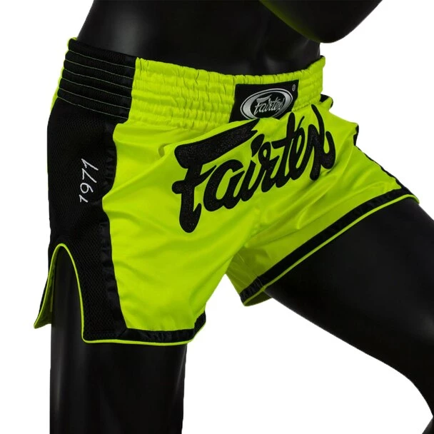 New Slim cut Muay Thai Shorts by Fairtex. Featuring high slits for unrestricted movements, high-quality satin & 6 elastic-bands waistbands for maximum comfort and snug fit.